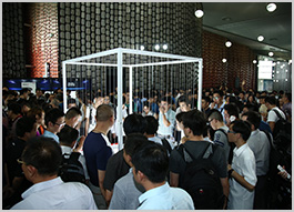 会后兴奋的观众涌向体验区